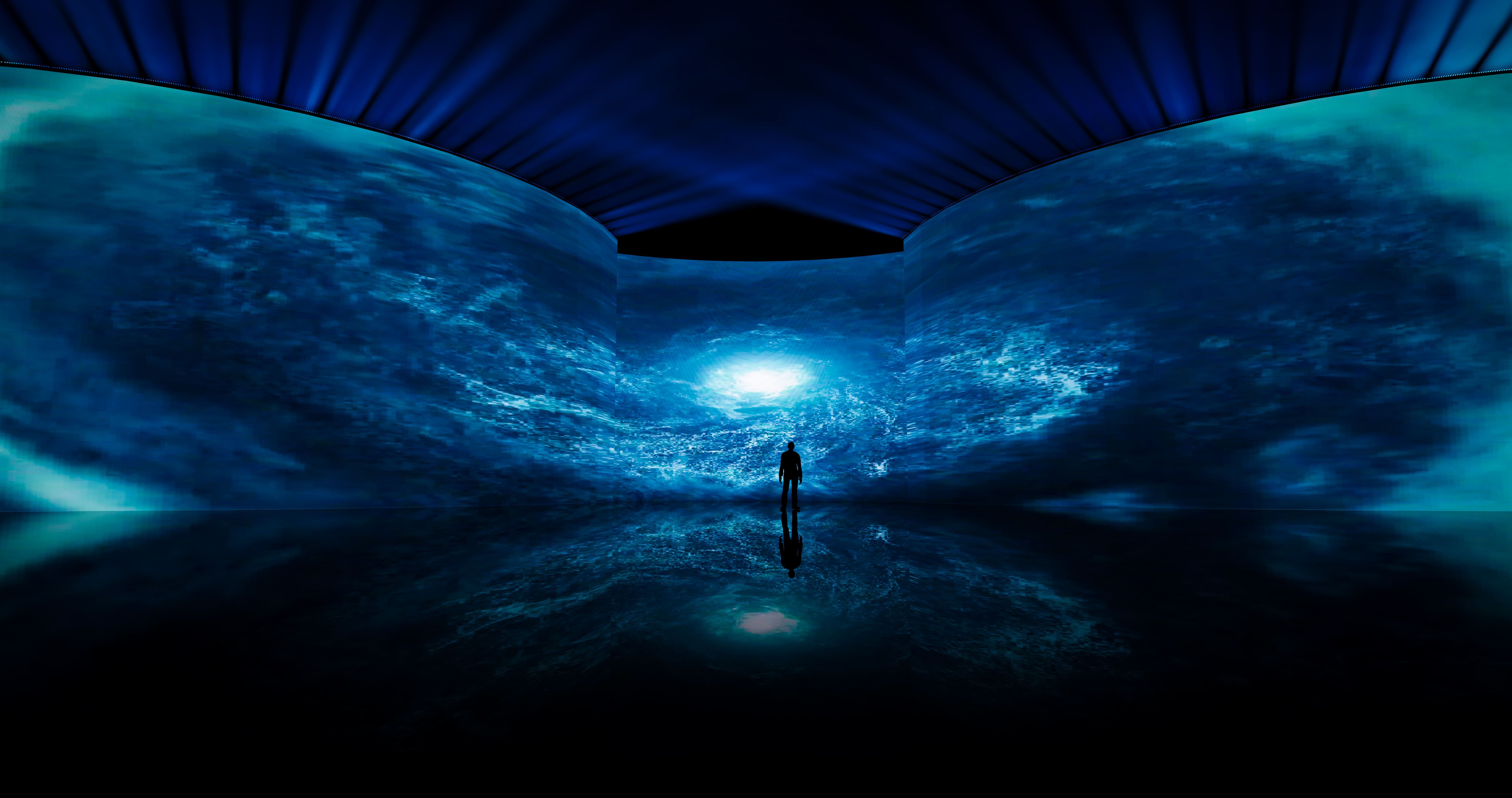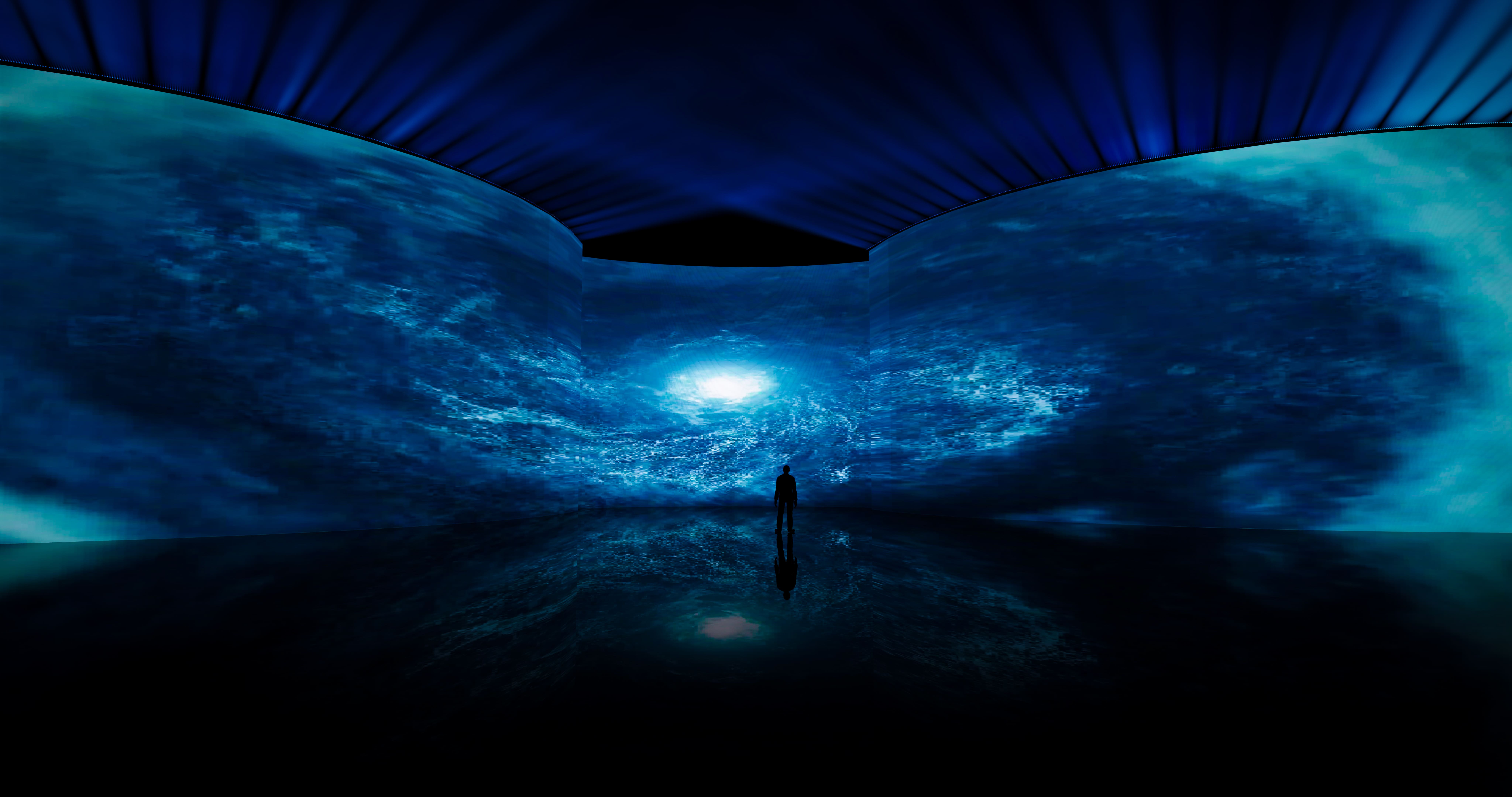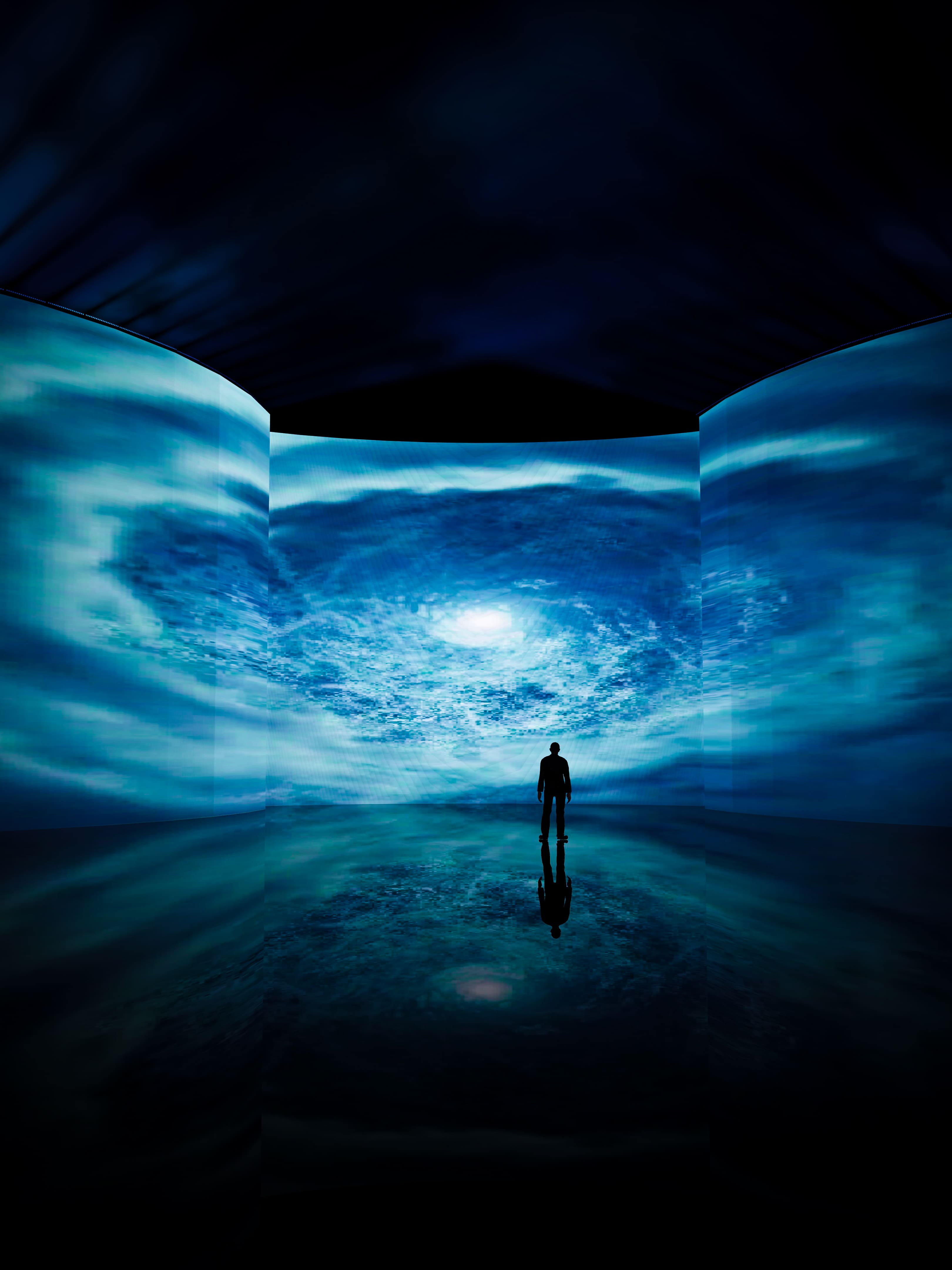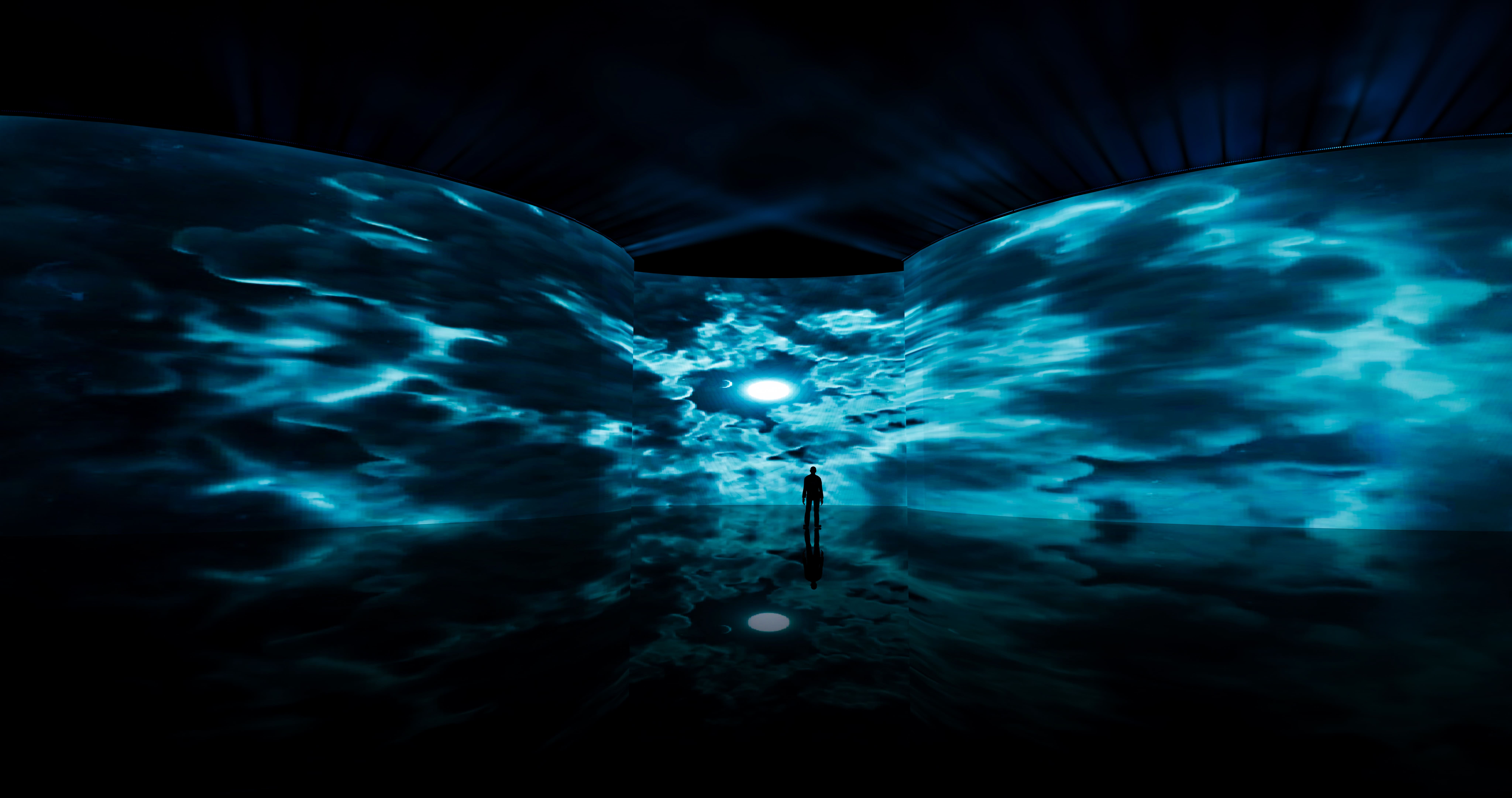 We designed an immersive concept using multiple screens arranged in semi-circular shapes, creating a surrounding effect around the artist. This setup transforms the audience’s perception through visuals that shift across different atmospheres.