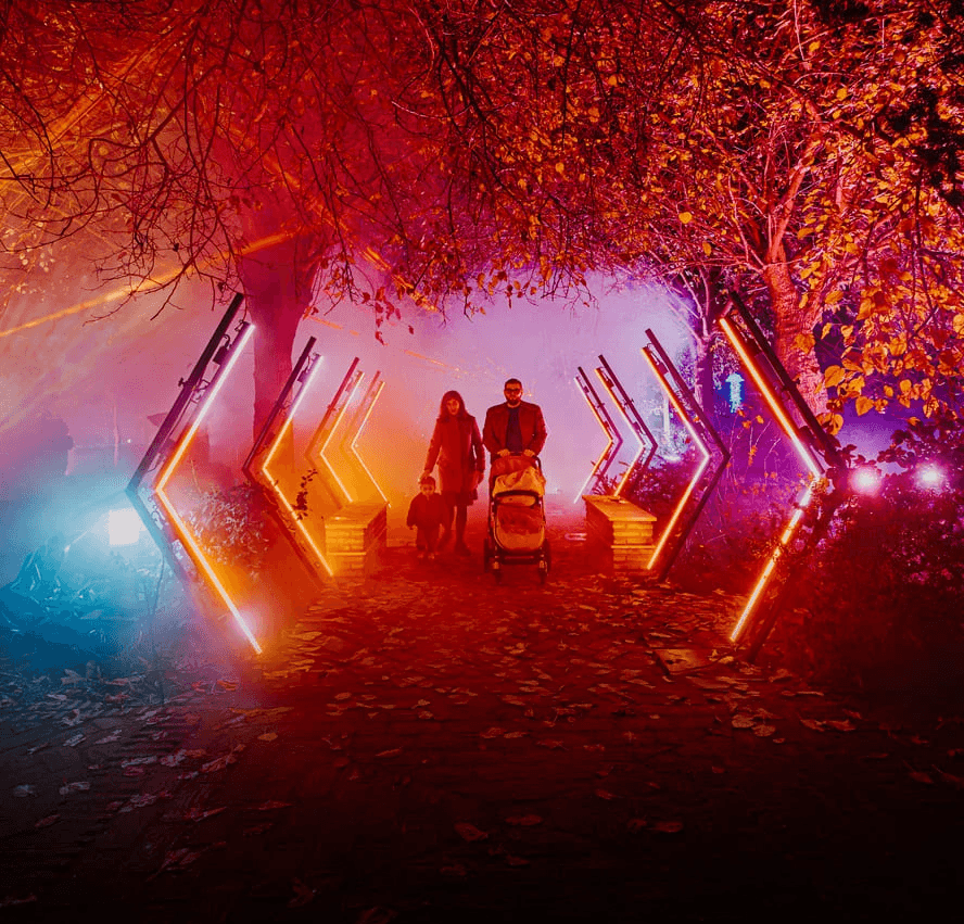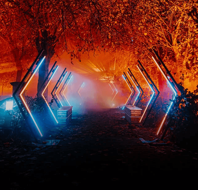 We developed the complete design for this immersive experience in nature. We implemented lighting equipment, lasers, special effects, and sound, transforming each space in the environment into a unique experience.
