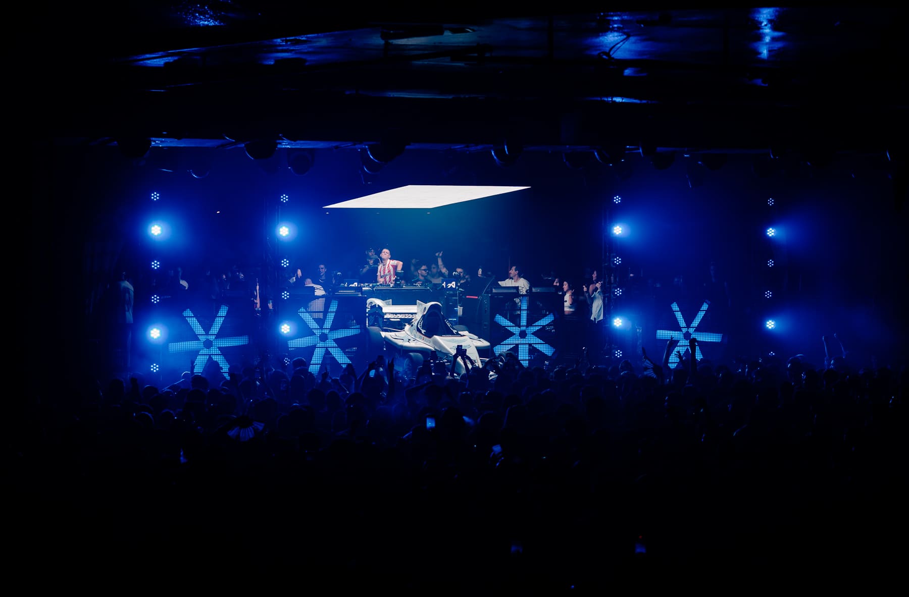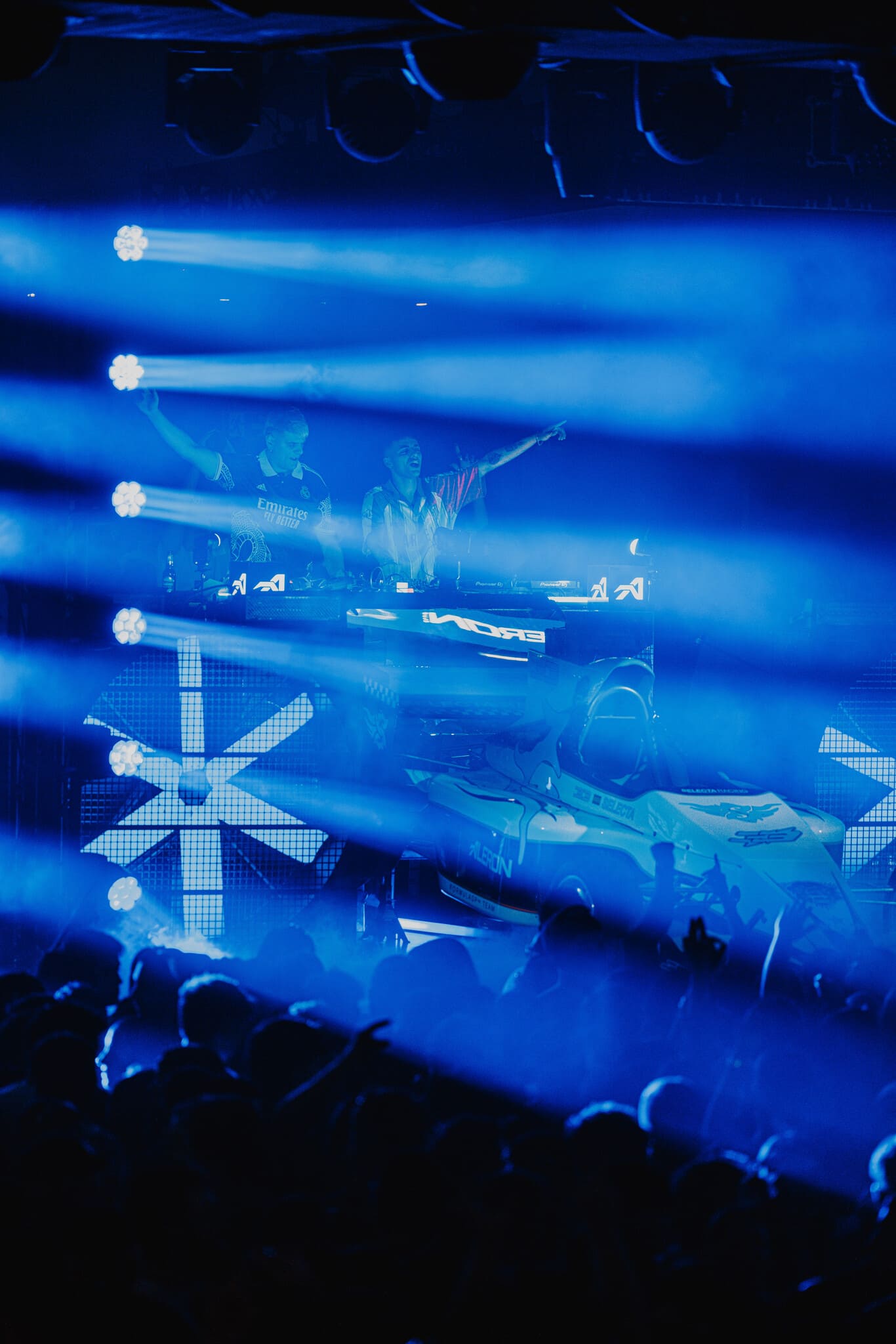 Desarrollamos el diseño visual y la producción técnica del show de Alerón en la Sala Riviera, fusionando técnica, arte y emoción. En directo, dimos vida al espectáculo mediante la operación sincronizada de iluminación, láser y visuales. Nos inspiramos en una estética industrial, incorporamos ventiladores iluminados, una pantalla vertical sobre el Fórmula y cuatro torres escénicas que amplificaron la fuerza visual del show, creando así una experiencia inmersiva para los asistentes.