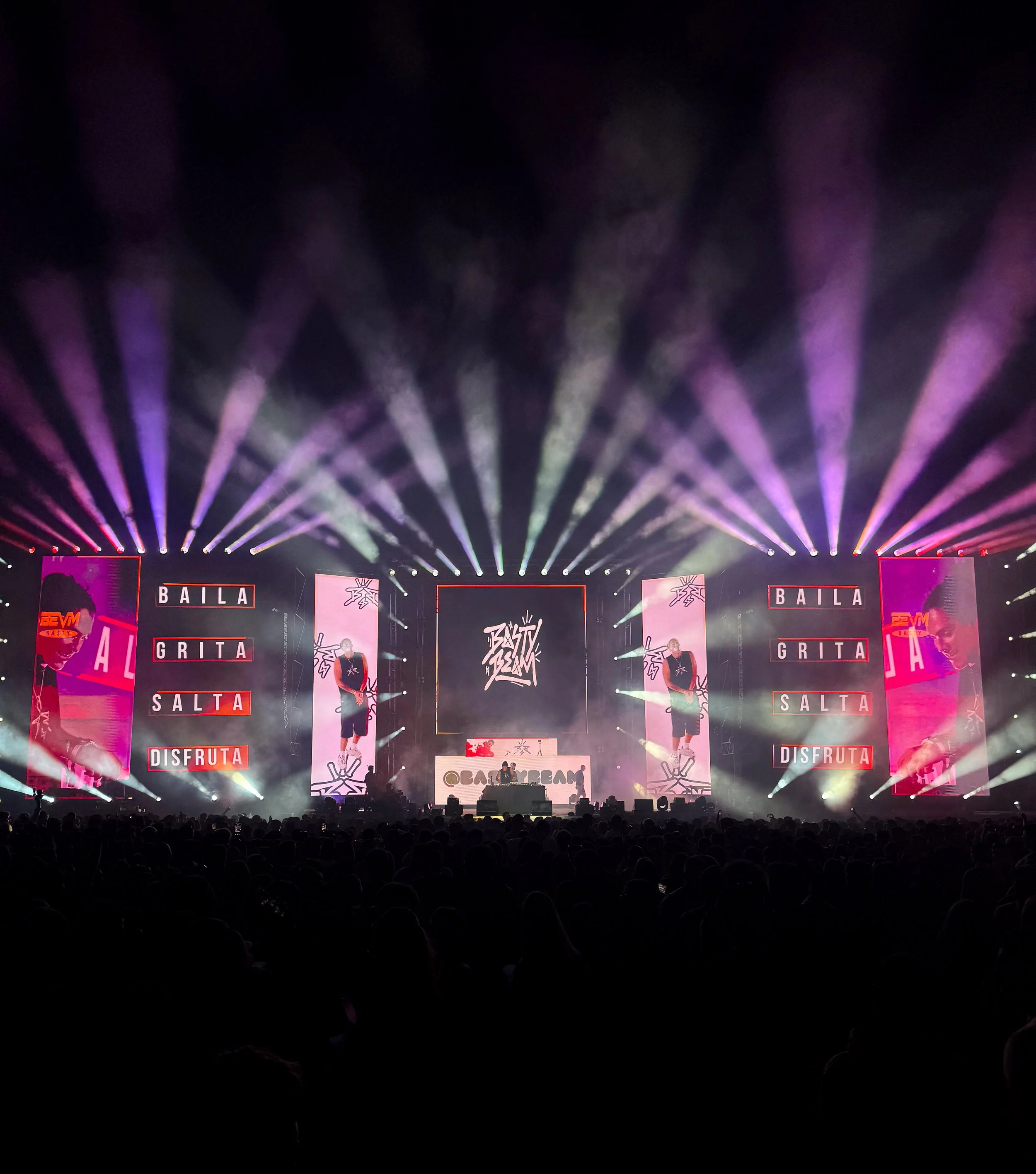 Operamos en directo la iluminación y los visuales del Festival de Fiestas, creando una experiencia envolvente donde la iluminación y la imagen acompañaron cada momento del show, asegurando una coordinación precisa y una puesta en escena de alto impacto visual.